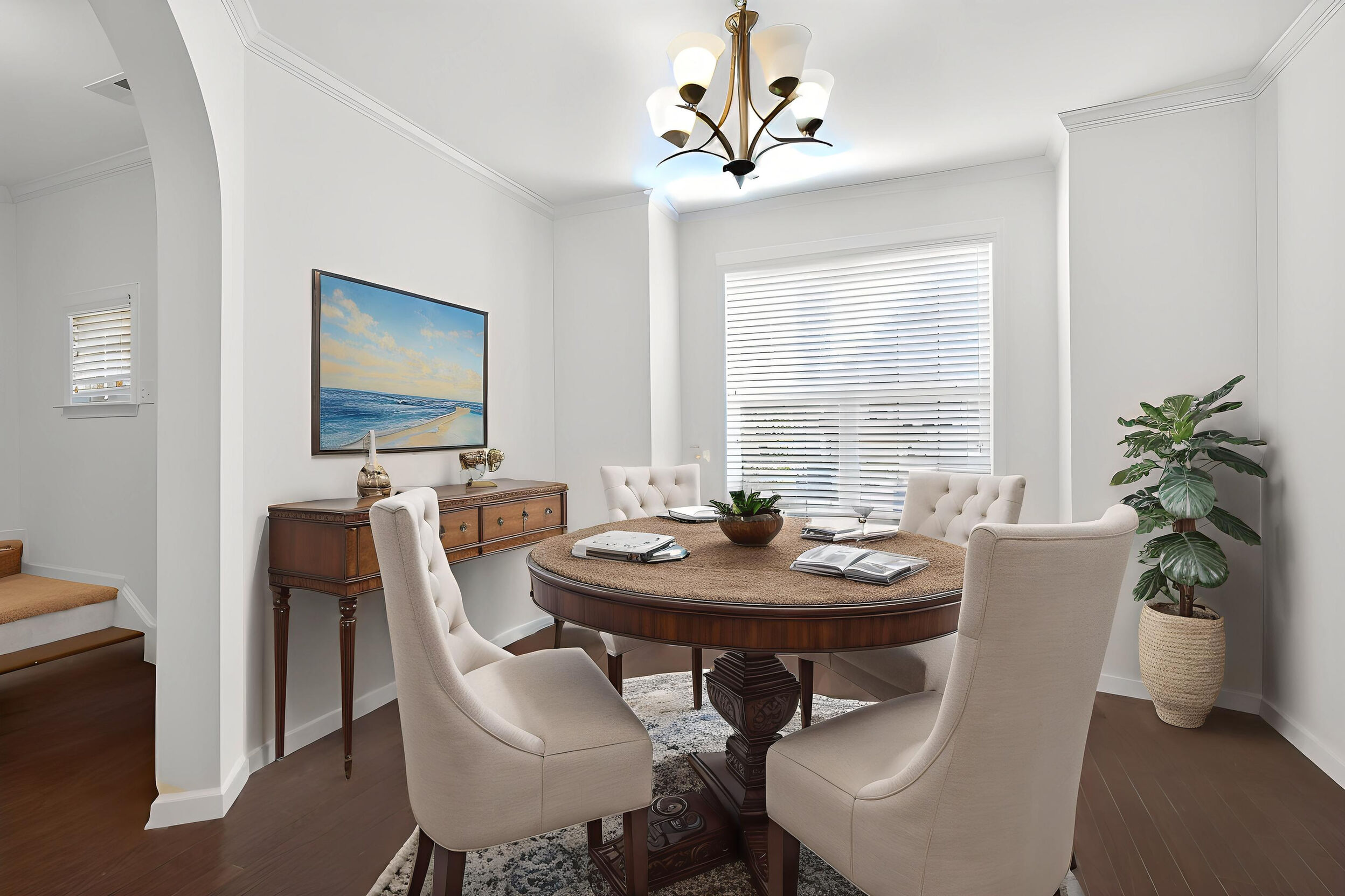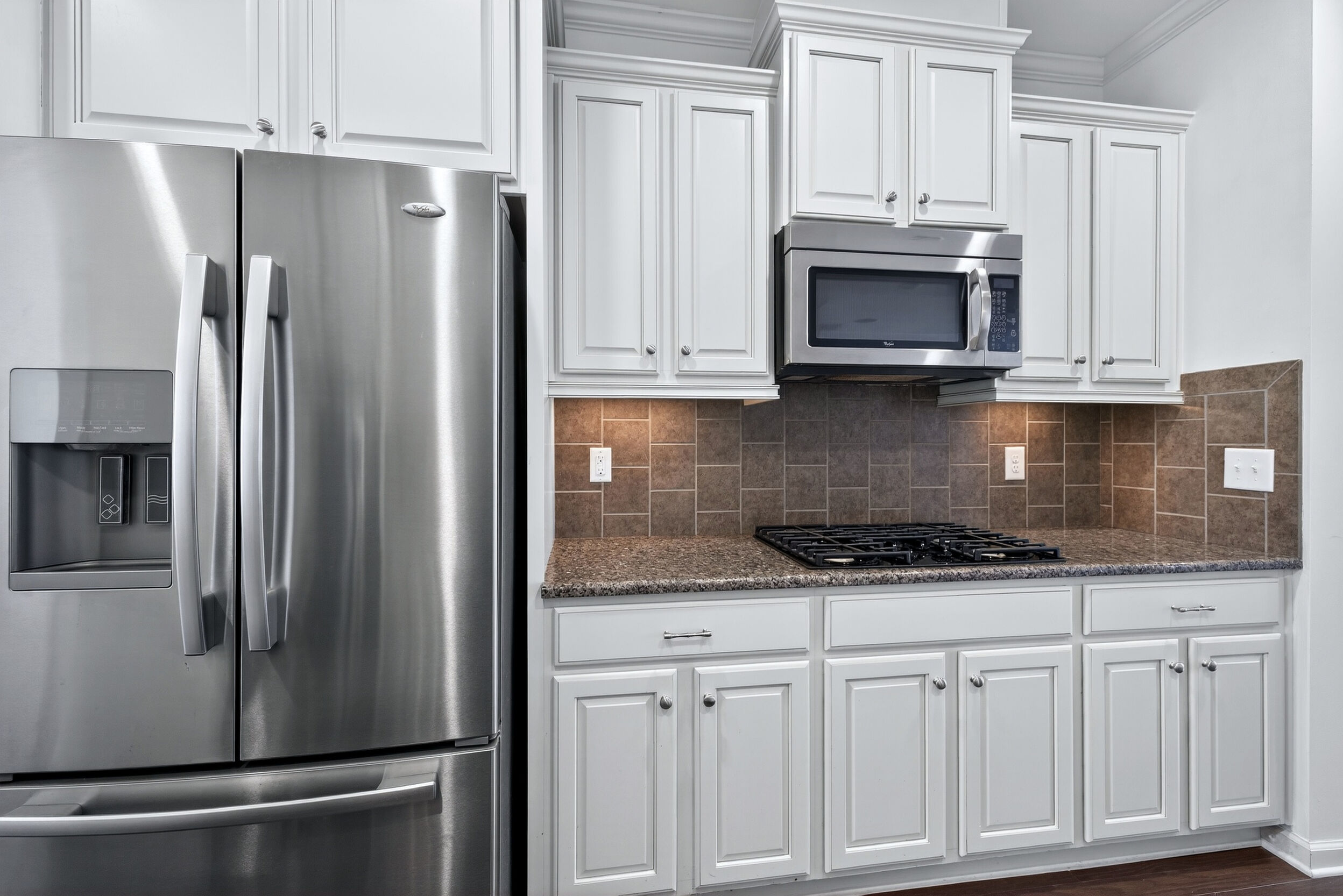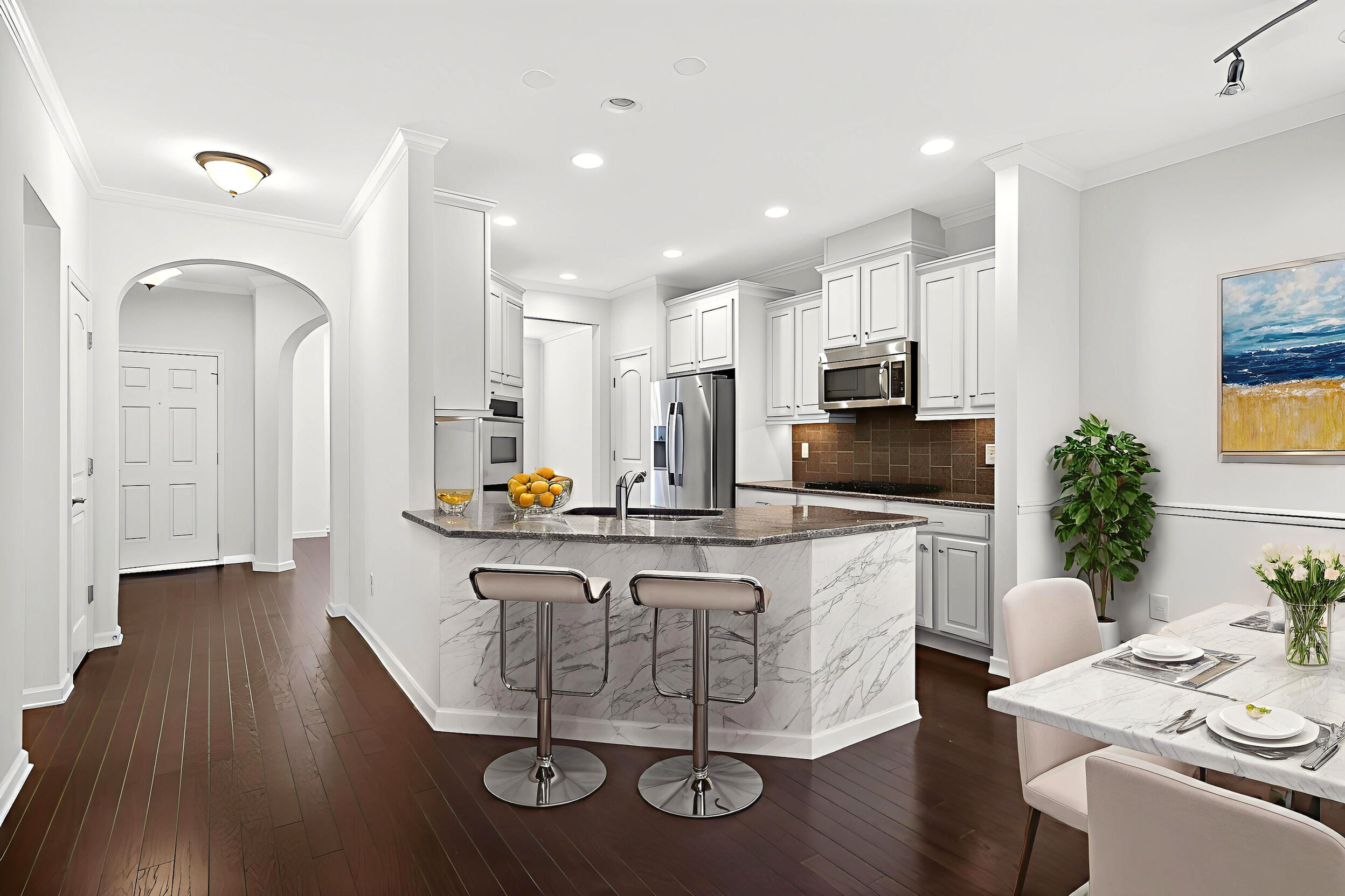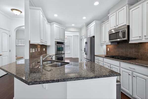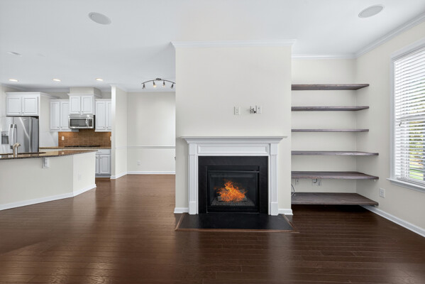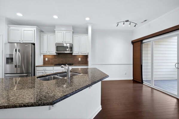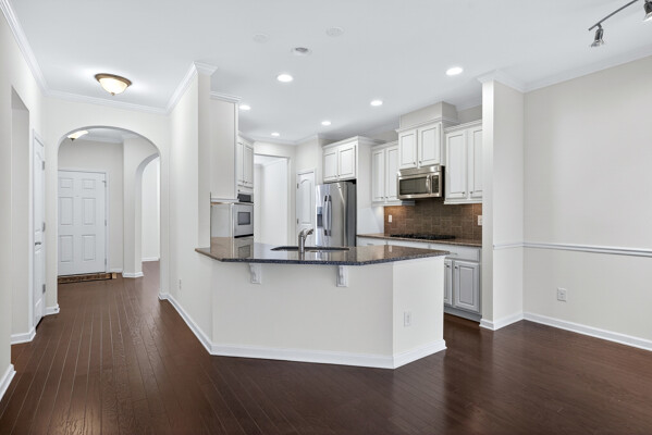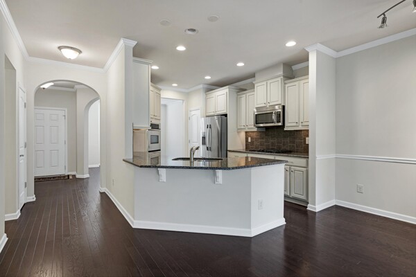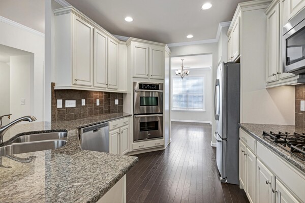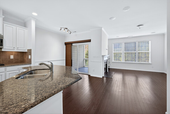 Experience refined, urban-inspired living in this elegant 4-bedroom, 3.5-bath, 2 car garage townhome in Cary's exclusive Enclave at Stone Creek Village, located within one of the best school districts in the triangle. With over 2,100 sq ft, this move-in-ready residence features an archway and oversized bay window in the dining room, gourmet kitchen with crown molding, chair rail and dining area. The chef area boost the latest warm and inviting cream-colored cabinets, timeless granite countertops, pantry storage closet, and stainless appliances. Archway entrance to a chic family room with a gas-log fireplace, bookshelves and covered balcony overlooking tranquil woods and the Cary Greenway. Enjoy fresh paint throughout in SW Greek Villa, LVP floors, high ceilings, crown molding, custom built-ins, and a two-car epoxy-floor garage. The luxe primary suite offers a tray ceiling and spa-inspired bath with glass enclosed shower and soaking tub, while the lower-level bedroom with full bath is ideal for guests or a private office. Perfectly positioned within steps of shopping, dining, groceries, medical facilities, and more-this is sophisticated living in one of Cary's most coveted walkable locations. Don't miss this outstanding, beautiful 4 bedroom, brick home !